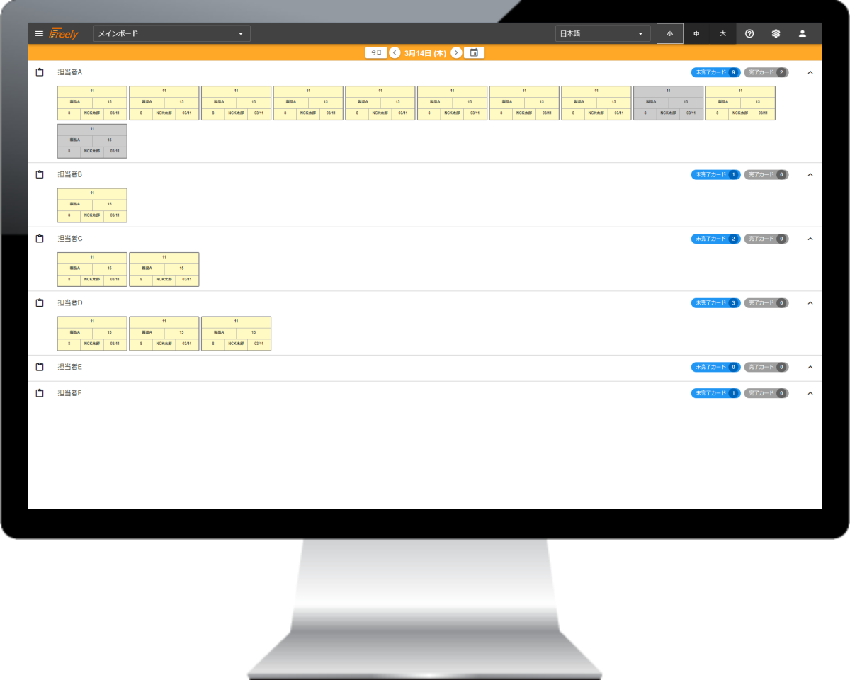 | 完了状態表示機能 | 未完了カードと完了カードの枚数をエリアごとに表示します。 |