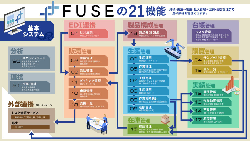 同じシステムを各拠点のご担当者様がご利用いただけますので、FUSEご利用企業様の顧客からのオーダーの変更に伴う製造計画の見直しなどが発生した場合でも、変更指示がリアルタイムに反映・共有することができ、業務効率の向上が期待できます。