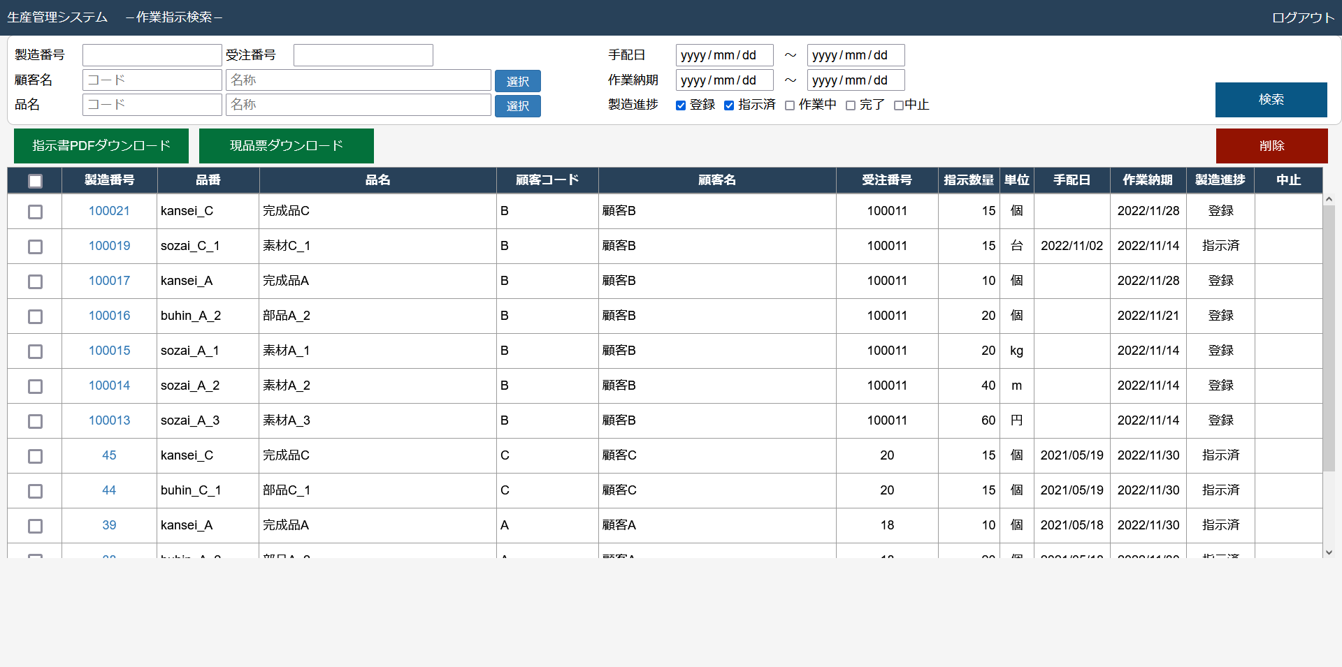 - 製品マスタに部品構成を登録しておけば、受注した製品をワンクリックで生産指示単位の部品に展開が可能です。