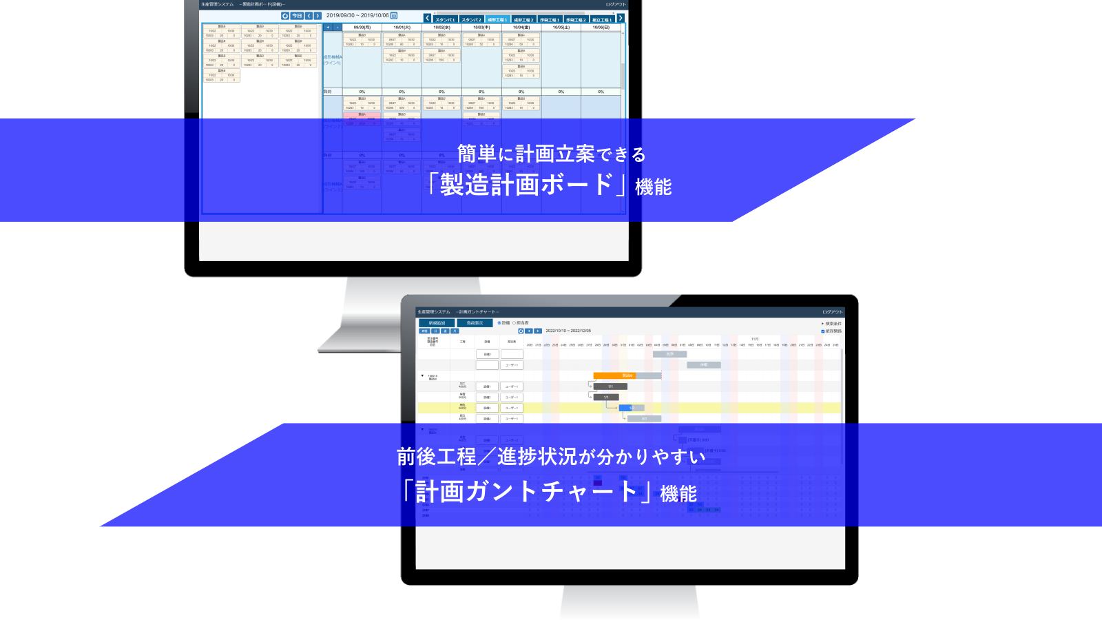 業務運用に合わせて2種類の計画ボードから選択でき、生産計画業務の手間削減や属人化脱却に貢献します。